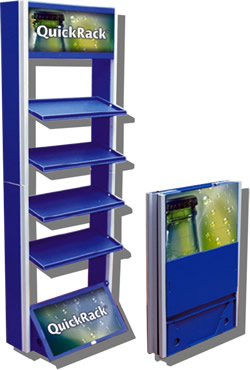 Quick Rack Dos-en-uno, exhiba su producto y cree presencia de marca. Medidas armado Frente 61.5 cm Altura 171 cm Fondo 50 cm Medidas del área grafica Copete 55 cm de ancho x 25.5 cm de alto Banner 55 cm de ancho x 94 cm de alto Pedestal 53.5 cm de ancho x 28.5 cm de alto Pesa 9 kg Incluye maleta de lona con ruedas << Regresar